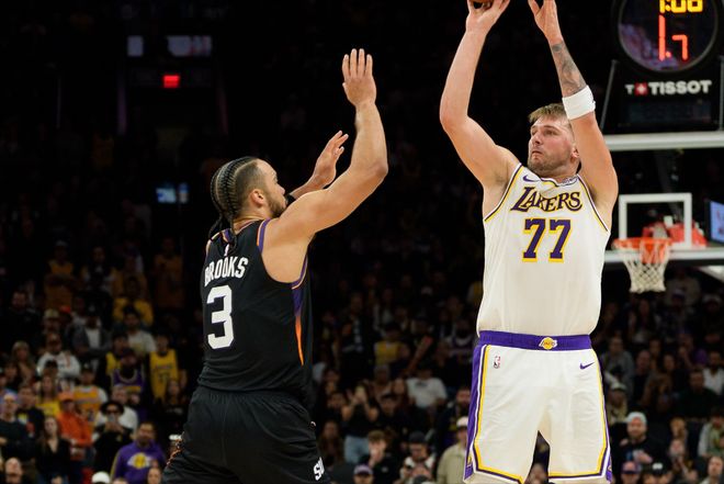 狄龙和詹姆斯之间,已经不能用简单的恩怨来形容了。两人在场上似乎是另一个吹罚尺度,各种拉扯和肉搏。值得一提的是,狄龙一个救球的回合,直接把球扔到了詹姆斯的头上。我们都知道詹姆斯职业生涯被恶犯的次数很多,但他大部分时候都不会生气。可这一次,詹姆斯怒了,因为狄龙动了他的头发,好在这一次被裁判和队友拦住。不过,当詹姆斯和狄龙这边打得火热的时候,东契奇那边还在和自己的三分手感作斗争。三分14投2中,就算是威少来,也不至于这么差劲。好在,今天湖人队的替补席站出来两位奇兵。一个是被重新启用的范德比尔特,防守非常卖力且效果明显。